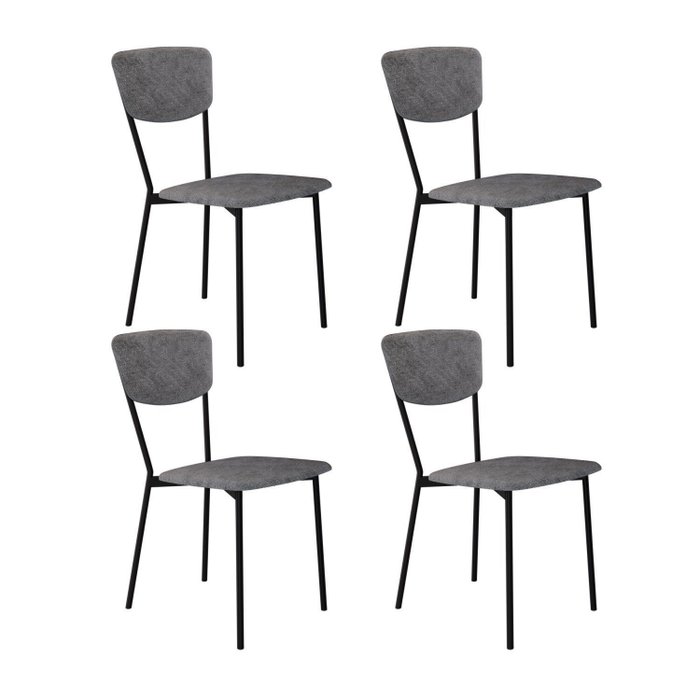 Cadeira Fixa Estofada Vintage Retrô com 4 Unidades Prata /Preto