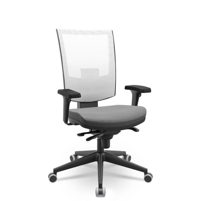 CORPO ENCOSTO TELA BRANCA T66 ASSENTO FACTO DUNAS CINZA T02 ATRIBUTOS BASE ITÁLIA RODÍZIO PU 55 MECANISMO SLIDER APOIO DE BRAÇO REGULÁVEL PU Suporte de peso 110kg