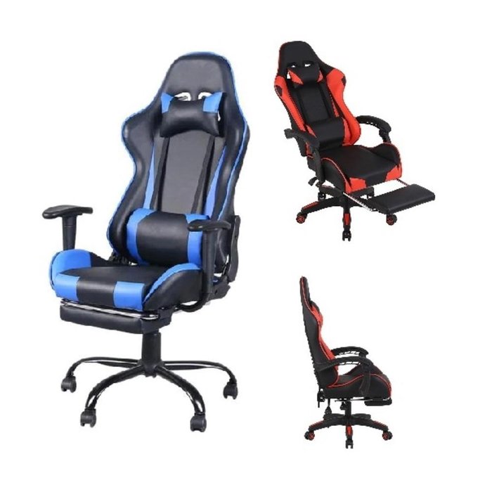 OBS: Imagens meramente ilustrativas. A cadeira enviada será exatamente igual ao modelo de cor preta e vermelha demostrada nas fotos acima, porém na cor preta e azul conforme descrito no anúncio.
