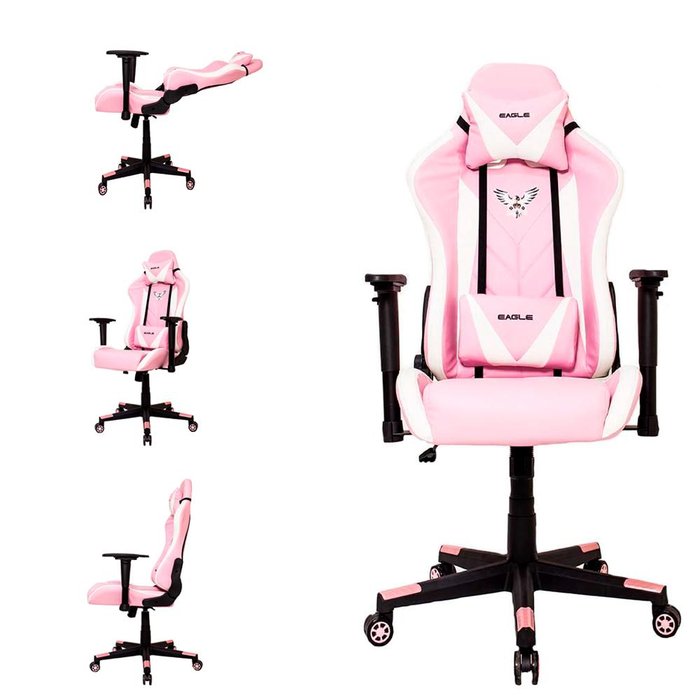 Cadeira Gamer EagleX Pro Reclinável Suporta até 150kg Rosa e Branco