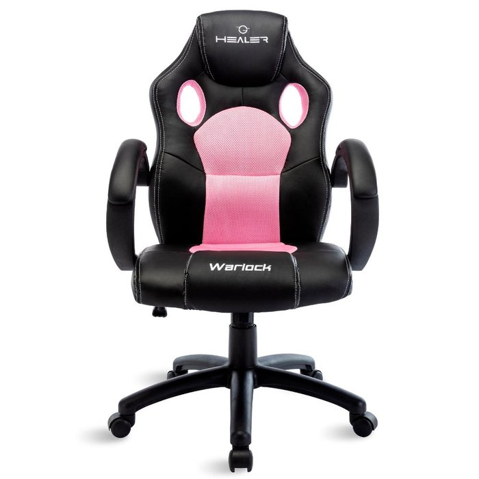 A Cadeira Gamer Rosa e Preta Healer Warlock Reclinável Giratória, possui design mais simples, mas proporciona máximo conforto ao usuário, pois possui estrutura plástica resistente e é revestida por espuma com densidade 60 kgs/m3 e couro PU.