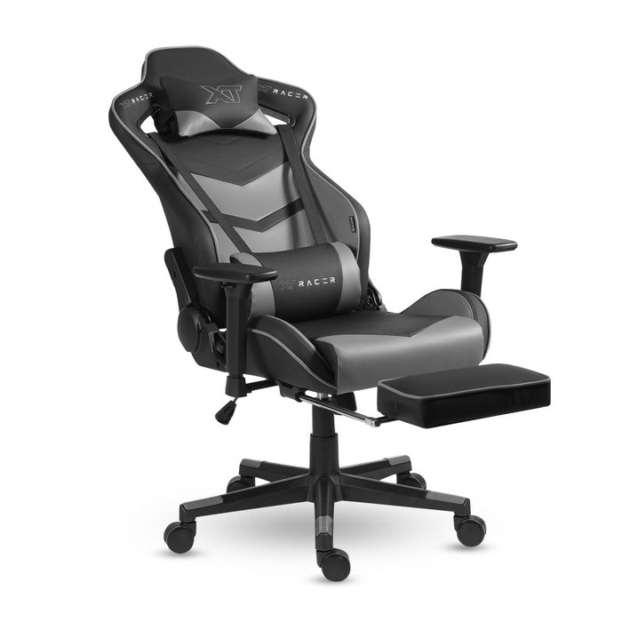Cadeira Gamer XT Racer TAYCAN com apoio de Pés - Preta e Cinza
