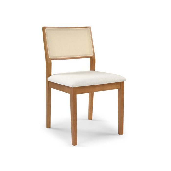 Cadeira Gipsy Cor Freijó Encosto Telinha Quadrada Crua Assento em Tecido 132 e Madeira Maciça Cappuccino Tela Natural e tecido Bege