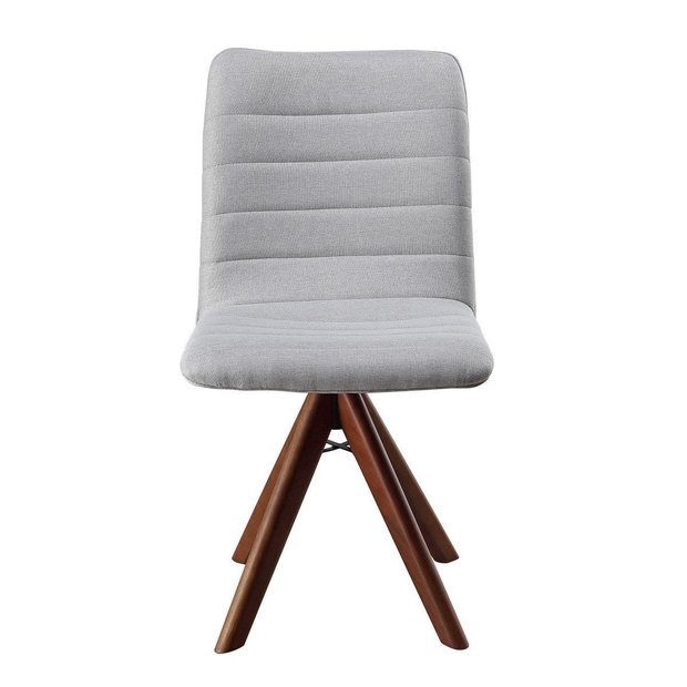 Cadeira Giratória com Assento Estofado e Base em Madeira Maciça – Chanel Exclusiva Linho Alumínio Castanho