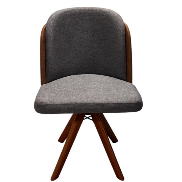 Cadeira Giratória em Madeira Maciça Cor Castanho Luma - Exclusiva Linho Cinza Castanho