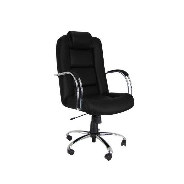 Cadeira Giratória Presidente Genius Cromada com Relax e Braços Tubular Cromado Preto