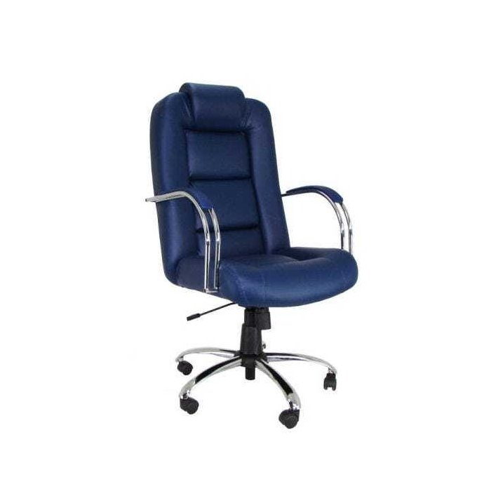 Cadeira Giratória Presidente Genius Cromada com Relax e Braços Tubular Cromado Azul