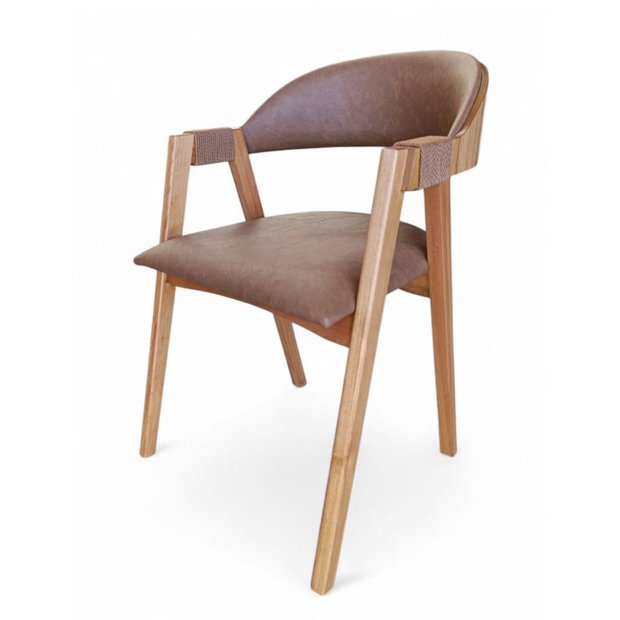 A Cadeira Greice é a combinação perfeita entre estilo contemporâneo e conforto. Com estrutura em madeira, revestimento em corino terracota e detalhe em corda marrom nos braços, ela valoriza o ambiente com um toque sofisticado e acolhedor. Ideal para salas de jantar, áreas gourmet ou espaços de convivência com identidade e charme.