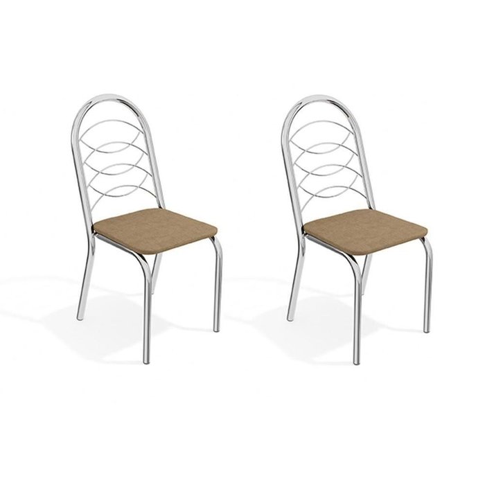 Cadeira De Cozinha Holanda 2c009 Kit 2 Un Cromado/linho Capuccino - Kappesberg