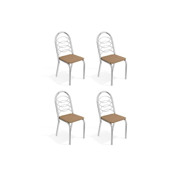 Cadeira Holanda 4c009 Kit 4 Un Cromado Linho Capuccino