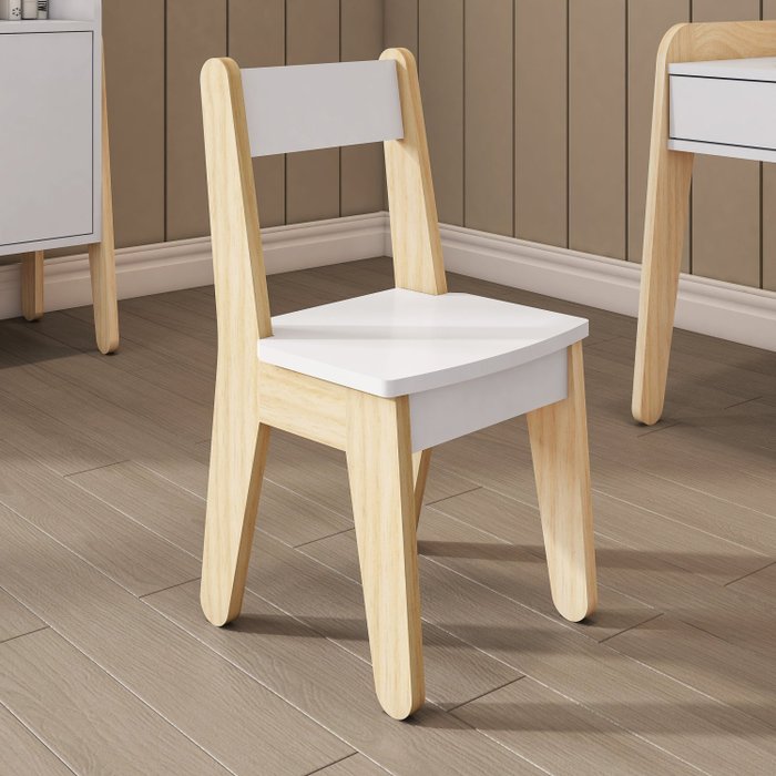 Cadeira Infantil em Madeira Maciça e Mdf Corujinha Casatema MadeiraOriginals Branco/Natural