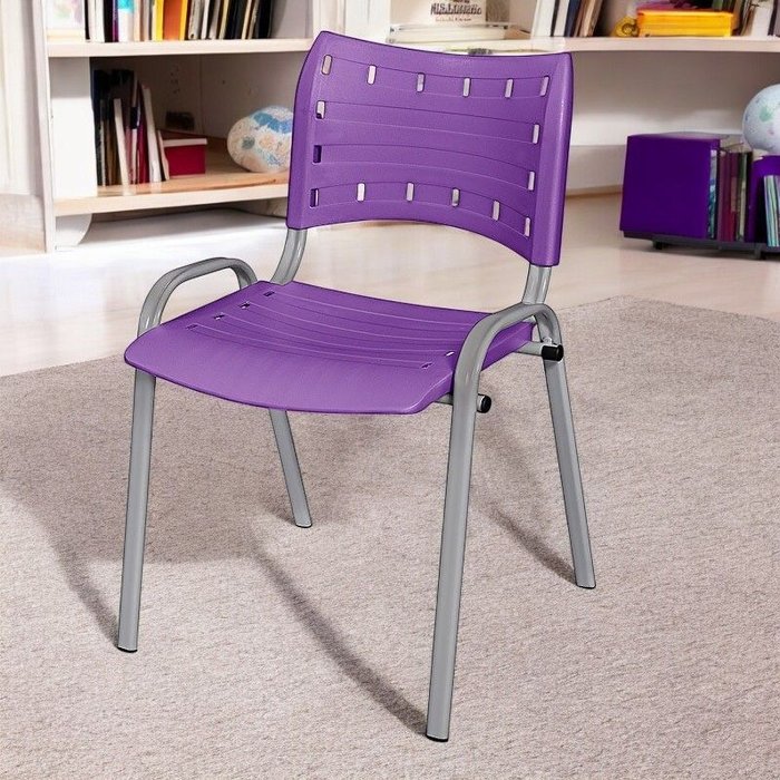 Cadeira Iso Base Cinza Escola, Escritório -violeta Kit 3 Un