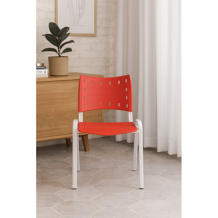Cadeira Iso para Escola Escritório Comércio Vermelha Base Branca Ecomhome