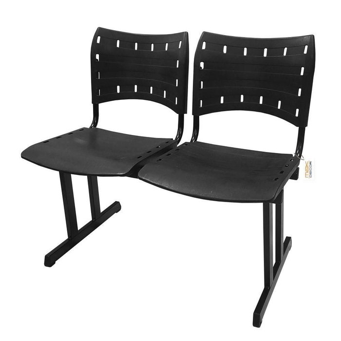 Cadeira Iso Pp Rp Longarina 2 Lugares Preta Preta