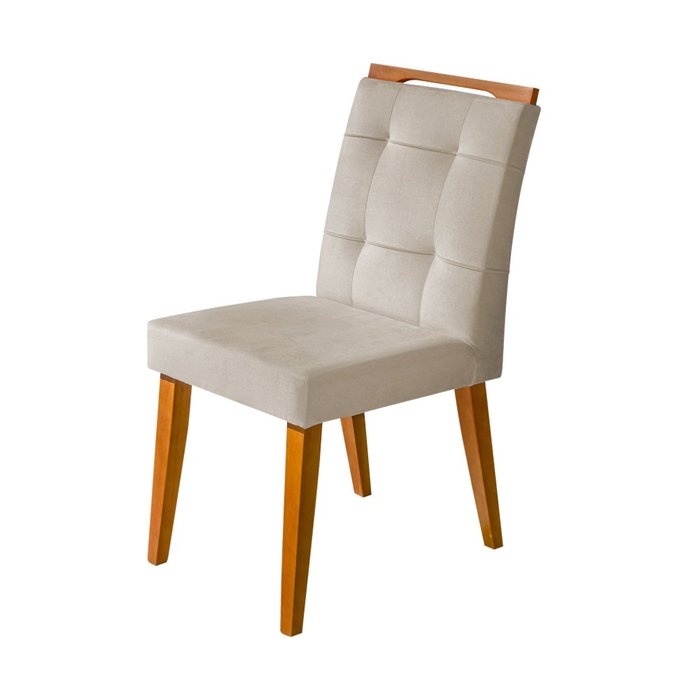 Cadeira Jantar Luxo Agatá Estofada Veludo Bege com Alça Madeira Maciça Mel