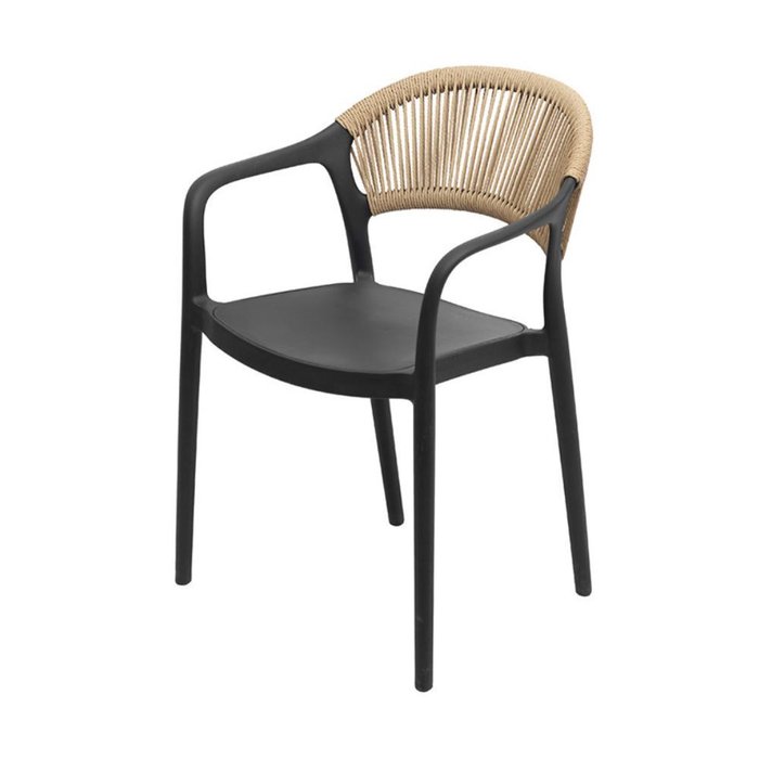 Conta com sua estrutura completa em polipropileno com tratamento UV, oque á torna uma peça que possa ser usada também em áreas externas, e encosto com barbantes de ratan sintético, levando mais conforto para a peça!