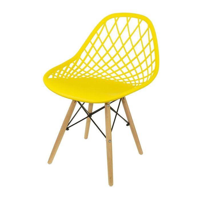 Cadeira Kaila Polipropileno Amarela Base Madeira Amarelo