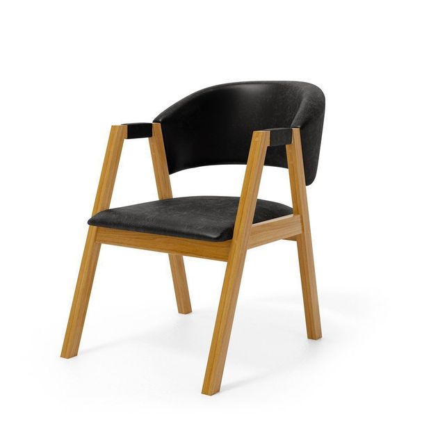 Cadeira Leticia Madeira Maciça Estofada Para Mesa De jantar Courino Preto 503 - Cadeira Para Sala De Jantar Estofada