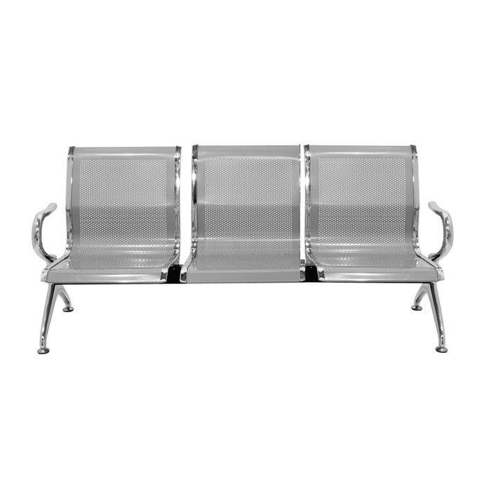 Cadeira tipo longarina com base fixa;Base fixa em formato de "Y" em aço cromado com quatro sapatas;Encosto com estrutura em aço perfurado;Assento com estrutura em aço perfurado;Braço em aço cromado com formato anatômico;Dimensões: 173cmx62cmx74cm;Encosto com 50cm de largura x 43cm de altura;Cada assento com 40cm de profundidade x 50cm de largura;Altura do assento ao chão: 35cm;Espessura do assento/encosto: 1.2mm;Espessura dos braços/pernas: 1.2mm;Espessura da base da longarina: 1.8mmPeso máximo recomendado: 150kg por assento.