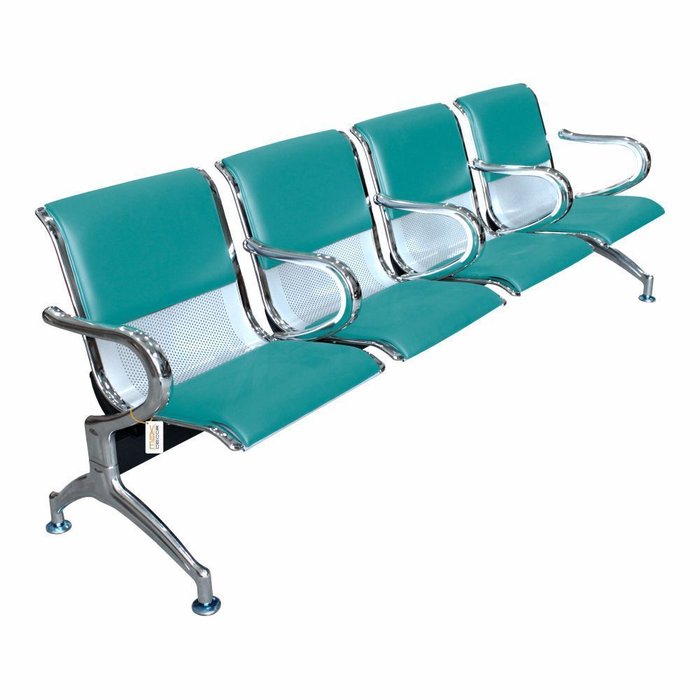 Cadeira Longarina 4 Lugares Estofado Colors C. Braço Central - Aqua Aqua