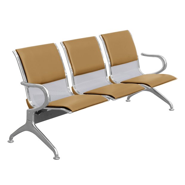 Cadeira Longarina Aeroporto 3 Lugares com Estofado Cor:bege bege
