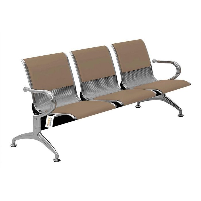 Cadeira Longarina com Est Cromada 3 Lugares Colors Marrom Claro
