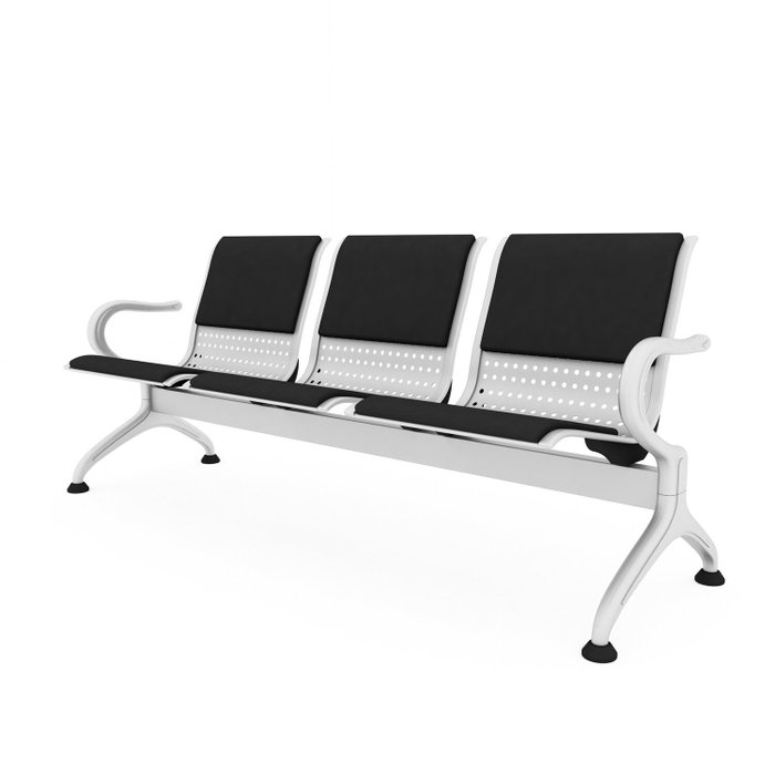 Cadeira Longarina Montreal 3 Lugares com Estofado Preto