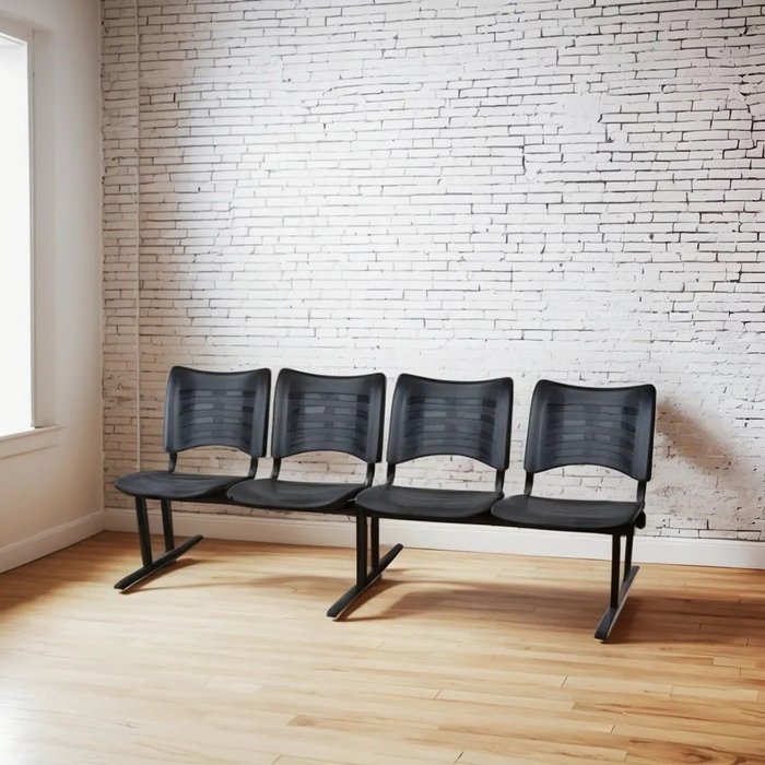 Cadeira Longarina para Recepção Iso 4 Lugares em Polipropileno Preto