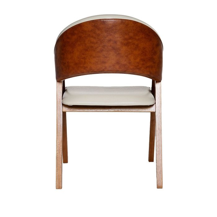 Cadeira Luiza Sala de Jantar com Braço Madeira Maciça Movellu Home Corino Creme/Corino Marrom