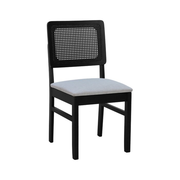 Cadeira Lyon Madeira Maciça Encosto Telinha Assento Estofado Linho Preto/Bege