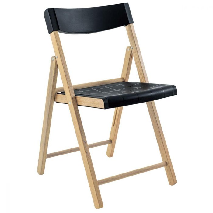 Cadeira De Madeira Dobrável Tramontina Potenza Itaúba Natural Com Assento E. Encosto Em Polipropileno Preto