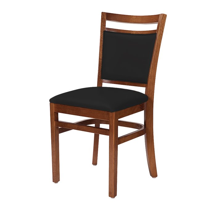 Cadeira Madeira Maciça Montreal Castanho Assento Encosto Estofado Preto