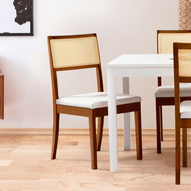 • Qualidade e Sustentabilidade Fabricada com estrutura em Madeira Maciça de Eucalipto de reflorestamento, esta cadeira garante alta resistência e estabilidade, suportando até 120 kg. O acabamento em Pintura UV fosca protege a madeira e realça seus veios naturais. Uma peça com design atemporal, perfeita para compor salas de jantar, cozinhas ou espaços gourmet com personalidade.