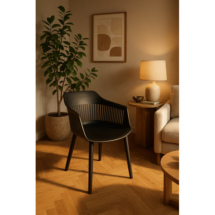 Cadeira Marcela• Cadeira em polipropileno (PP) com almofada poliuretano (PU)Cor:PretaEstilo:ContemporâneoDimensões e peso:Altura: 80 cmLargura: 57 cmProfundidade: 55,5 cmPeso Bruto: 6,5 KgPeso Líquido: 6 KgPeso máximo suportado: 120 KgGarantia de 3 meses contra defeitos de fabricação.Entrega:Trabalhamos com as melhores transportadoras para agilizar a entrega e os cuidados do produto.