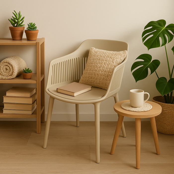 Cadeira Marcela• Cadeira em polipropileno (PP) com almofada poliuretano (PU)Cor:NudeEstilo:ContemporâneoDimensões e peso:Altura: 80 cmLargura: 57 cmProfundidade: 55,5 cmPeso Bruto: 6,5 KgPeso Líquido: 6 KgPeso máximo suportado: 120 KgGarantia de 3 meses contra defeitos de fabricação.Entrega:Trabalhamos com as melhores transportadoras para agilizar a entrega e os cuidados do produto.