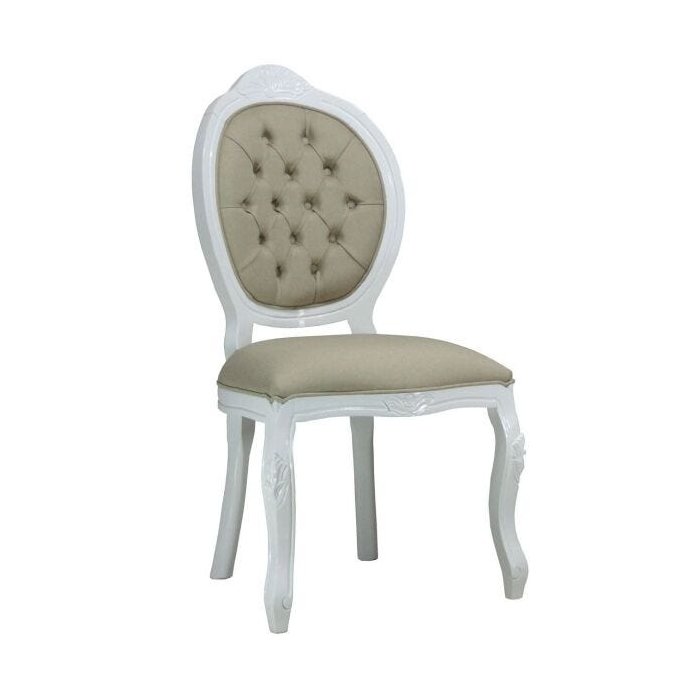 Cadeira Medalhão Entalhada Ii Branca e Linho Bege