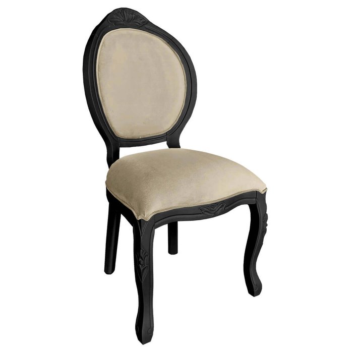 Cadeira Medalhao Madeira Maciça Design Ingles Luxo Poltrona Entalhada Renascentista Natural Inglesa PRETO | BEGE