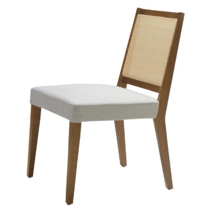Cadeira MH-3224 Herval Madeira Maciça Amêndoa Encosto em Palha Algodão Assento em Linho Cinza C