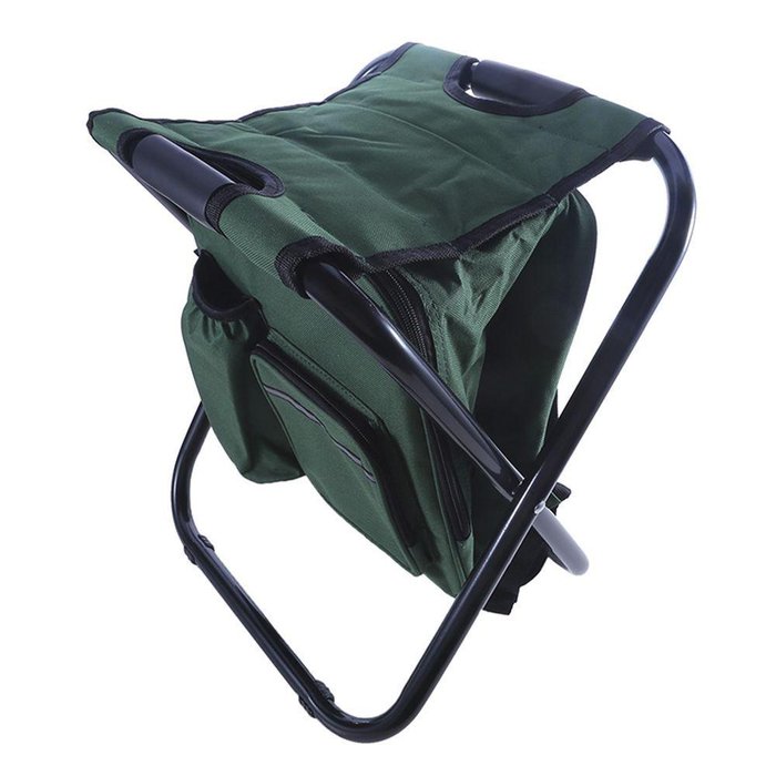 Cadeira Mochila Semi Termica Bolsa Banco Dobravel 2 em 1 Acampamento Pesca Camping Verde Musgo