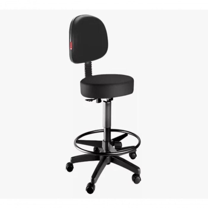 Cadeira Mocho Caixa Alta Preta A Cadeira Secretária Mocho Caixa foi projetada para proporcionar conforto e bem estar, tornando o dia-a-dia mais confortável. Utilizada para compor diversos tipos de ambientes profissionais ou particulares. - Assento e encosto: madeira MDF. - Assento e encosto: espuma injetada. - Revestimento do assento e encosto: em corano - Base: em aço - Mecanismo: giratório com regulagem de altura com sistema de amortecimento a gás. -Apoio de pé com regulagem de altura. - Medidas Assento: 35CM - Medidas Encosto: 36 cm largura x 29 cm altura - Altura do Assento até o chão: mínimo 66 cm - máximo 75 cm - Altura total até o chão: mínimo 114 cm - máximo 121 cm Peso recomendado: até 120 kg