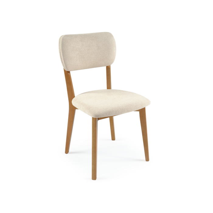 O acabamento da madeira é um destaque, com uma dupla camada de selador e finalizado com verniz PU exclusivo, que realça a beleza natural da madeira. Os assentos contam com espuma D26 e os encostos com espuma D18, garantindo um máximo de conforto durante o uso. Ambos estão revestidos em tecido linho na cor bege claro. São perfeitas para ambientes como a sala de jantar. Com seu acabamento minimalista e o design elegante, elas se encaixam em qualquer decoração.