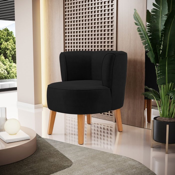 Cadeira Moderna Estofada para Recepção Clinica Tecido Veludo Macia Pés de Madeira Resistente Preto