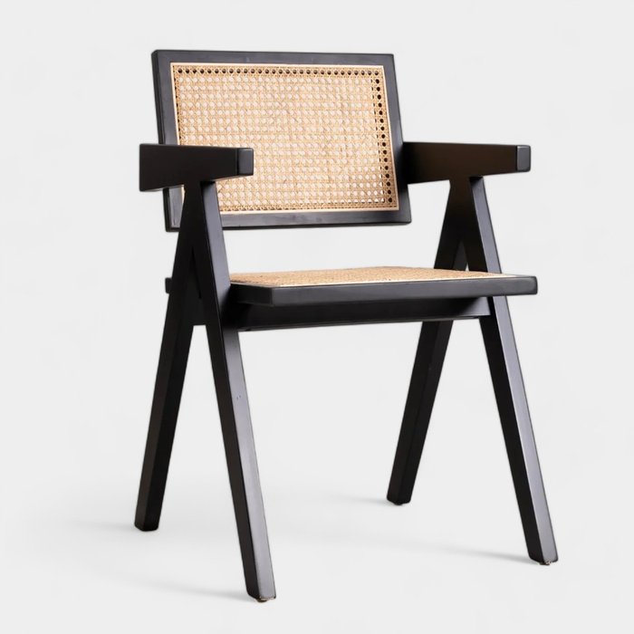 Peça Exclusiva a cadeira Alma possui rattan no encosto e assento. Tem braços permitindo um sentar mais confortavél e de posição relaxada.