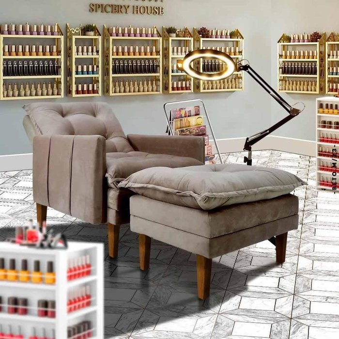 Cadeira para Manicure com Puff Veludo Bege Pandora Jm Móveis