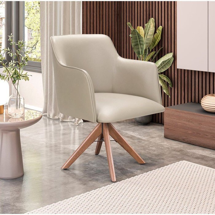 PRODUTO FABRICADO COM COMPENSADO PRENSADO E REVESTIDO COM VELUDO 100% POLIÉSTER. NO ASSENTO, INSTALAMOS A ESPUMA CONTÍNUA D28 SUPERSOFT. O ENCOSTO POSSUI ESPUMA D26 SUPERSOFT. POSSUI BASE GIRATÓRIA DE AÇO COM PÉS DE MADEIRA MACIÇA.