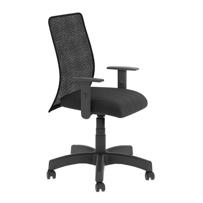 Assento em tecido Space e encostos em tela super resistente preta. Base e braço pretos. Dimensões da Cadeira: