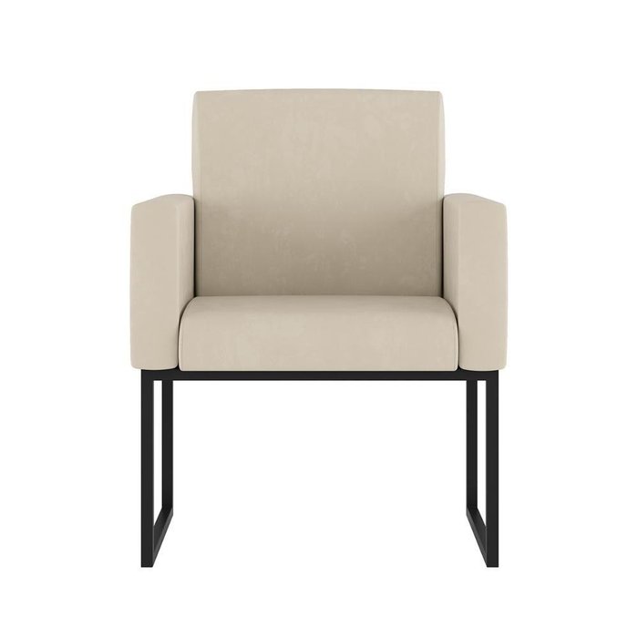 Cadeira Poltrona com Base de Ferro Courino Preto Reforçada Cor: Bege Bege