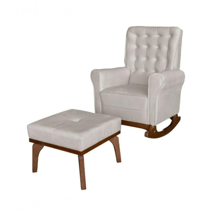 Cadeira Poltrona De Amamentação E Balanço C/ Puff Veludo Off White - Lahome Decor