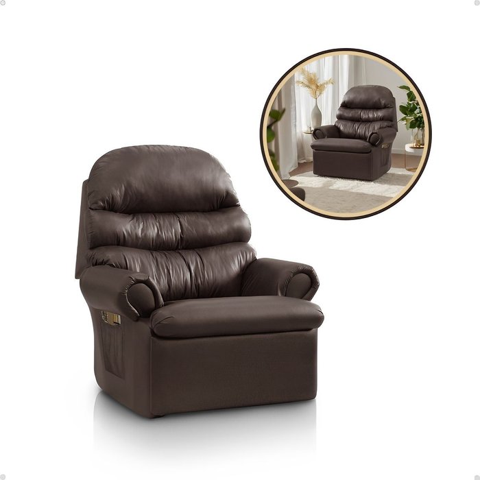 Cadeira Poltrona do Papai Descanso Reclinável Corino Marrom Quarto Sala Decoração