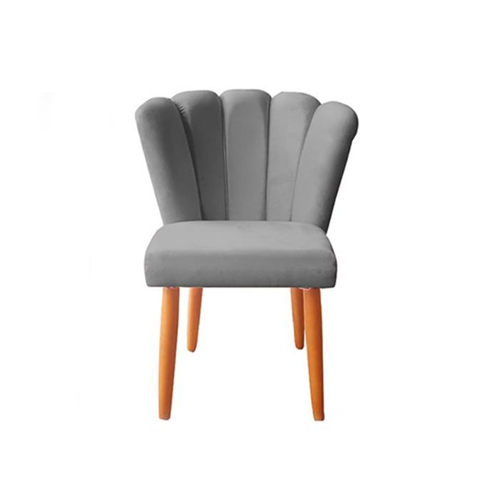Cadeira Poltrona Sala de Jantar Penteadeira Reforçada Decorativa Pétala Suede Cinza